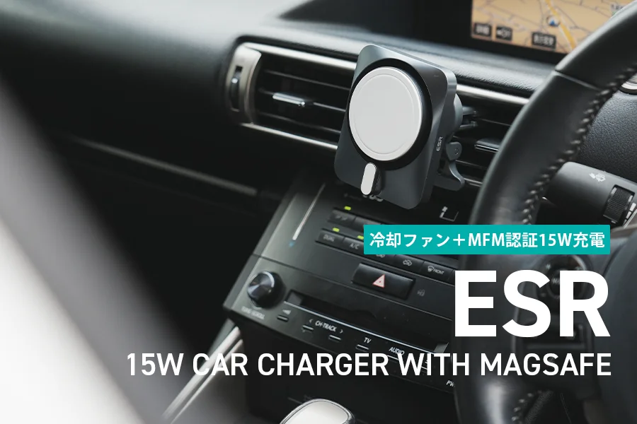 ESR 15W MagSafe車載充電器ホルダー レビュー|冷却ファンのCryoBoost付きのMagSafe公認モデル